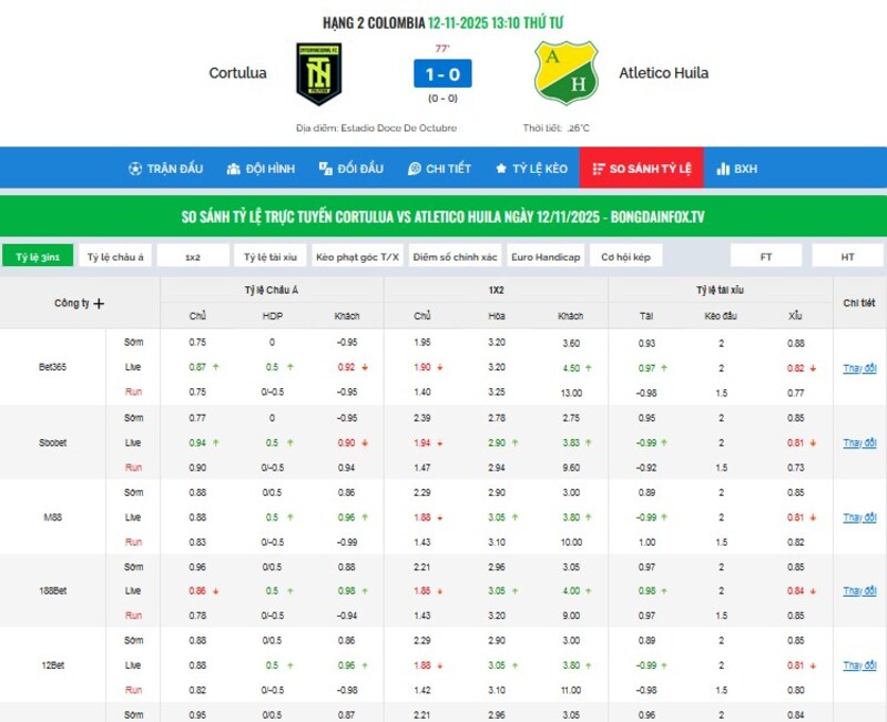 Mình đặc biệt thích điều này vì khi chơi kèo, chỉ một thay đổi nhỏ trong tỷ lệ cũng có thể ảnh hưởng toàn bộ quyết định. Bóng Đá INFO cập nhật tỷ lệ kèo nhà cái trực tiếp từ các nhà cái lớn như: