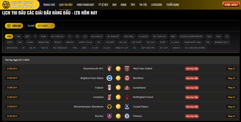 Không cần phải làm mới trang hay tra cứu nhiều nơi, mọi diễn biến Premier League, hạng nhất Anh, La Liga, Serie A hay Bundesliga đều nắm gọn trong tay. Mình đặc biệt chú ý đến lịch thi đấu ngoại hạng anh, tất cả trận cầu được cập nhật chi tiết theo ngày, giờ, giúp mình không bỏ lỡ bất kỳ trận nào quan trọng.